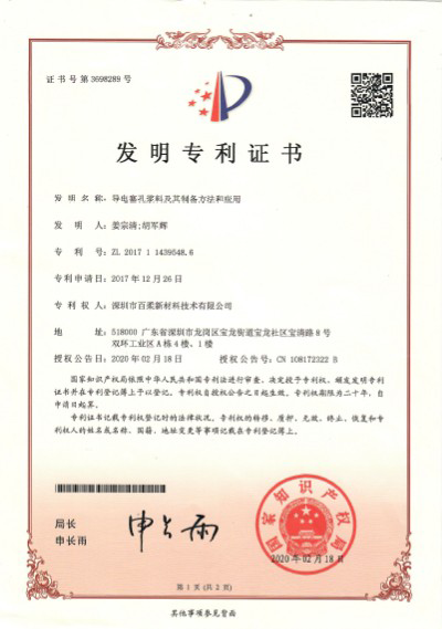 发明专利《导电塞孔浆料及其制备方法和应用》20200218